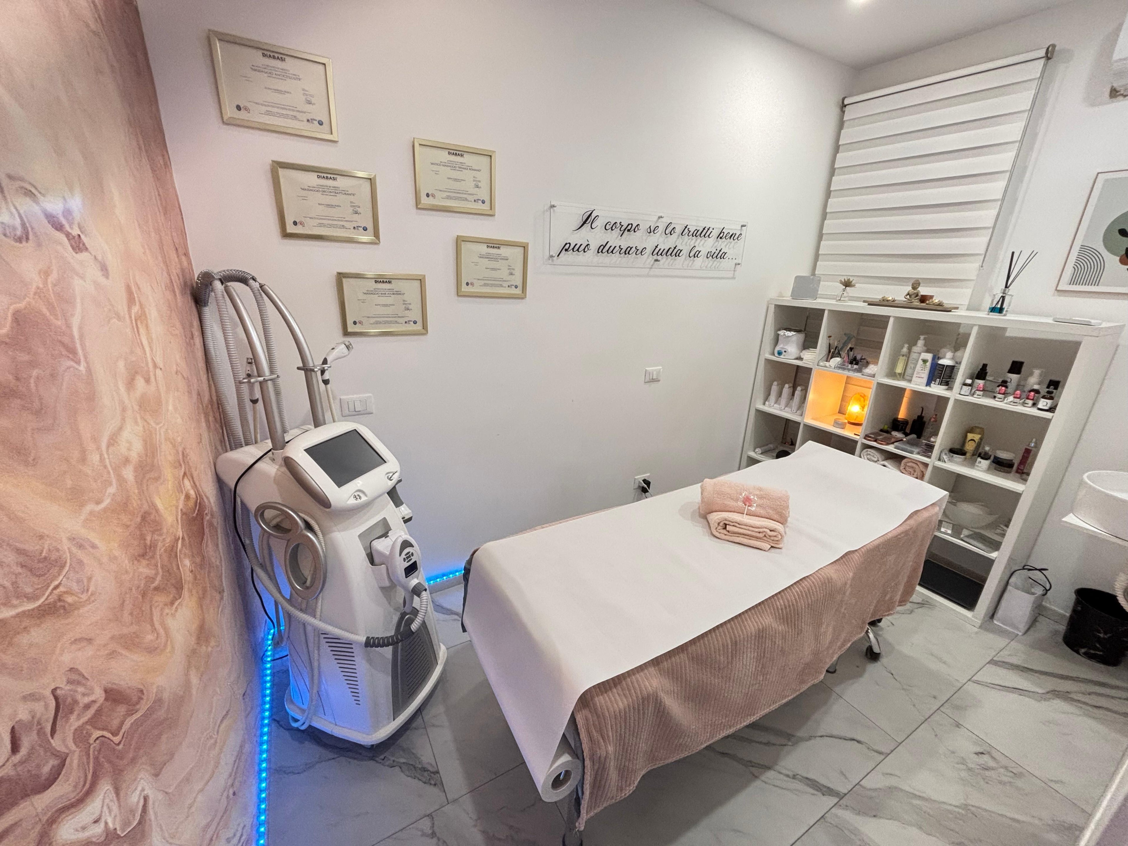 Entra nella nostra cabina trattamenti corpo, un santuario dedicato al tuo benessere. Qui l'atmosfera è studiata per garantire la massima serenità, con luci soffuse e un lettino confortevole pronto ad accoglierti. È in questo spazio che le nostre tecnologie avanzate, come l'apparecchiatura di rimodellamento corpo professionale, si uniscono all'esperienza dei nostri massaggi e trattamenti specifici. Un ambiente intimo e professionale dove il tempo si ferma e dove il corpo si rigenera completamente, come suggerisce la nostra frase d'ispirazione: "Il corpo, se lo tratti bene, può durare tutta la vita..."